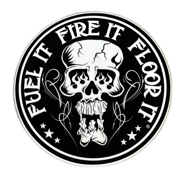 4" vinyl Fuel It, Fire It, Floor It® "Skully" sticker/decal