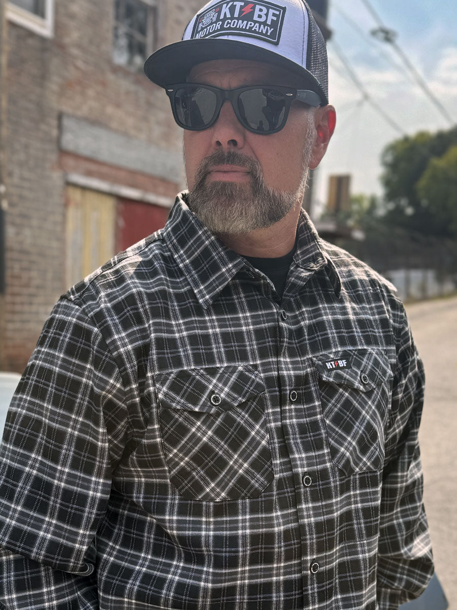 Whether you’re wrenching in the garage, heading to a car show, or just embracing the lifestyle, KTBF™ Flannels deliver unmatched quality and attitude.
